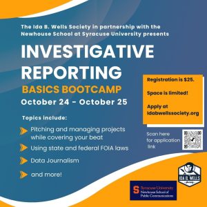 The Ida B. Wells Society is hosting a two-day investigative reporting workshop at Syracuse University, Oct. 24-25.